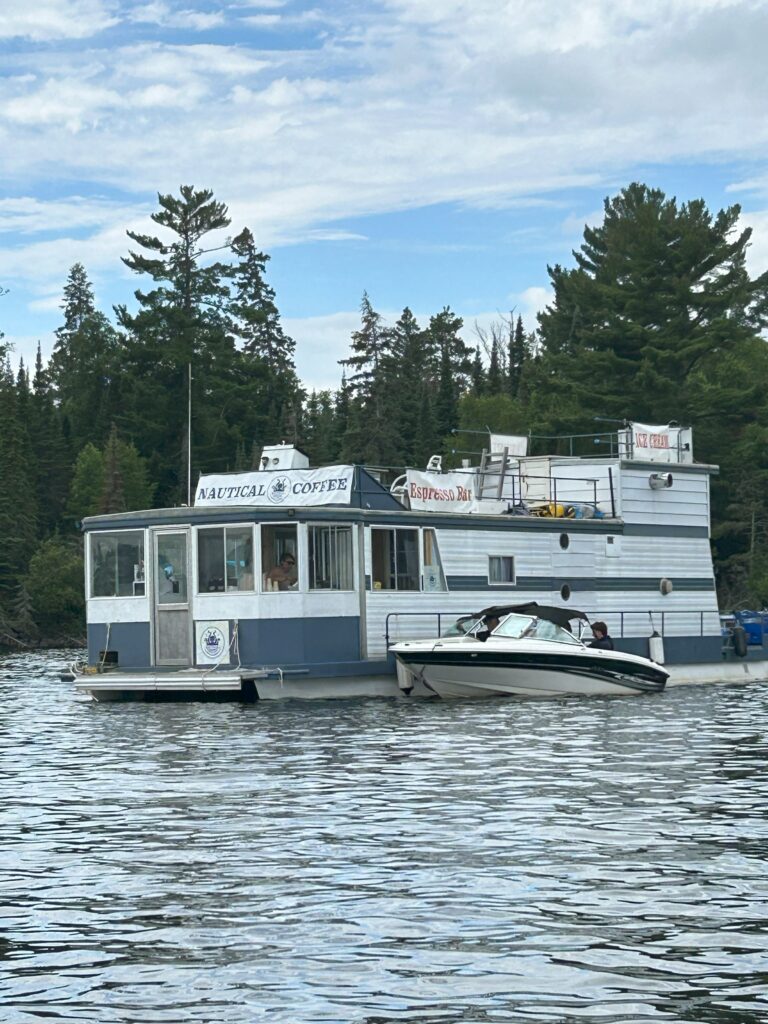 One of the most delightful discoveries we had on our trip on Lake of the Woods, Kenora, was a floating marvel that you won’t find on a regular map. This houseboat roasts its own coffee beans on board and offers the beans for sale as well as the freshly brewed coffee. Pull up along side, secure your boat, and place your order. Nautical Coffee uses an off-grid system that “allows us to chart our course and roast coffee wherever the wind blows”.